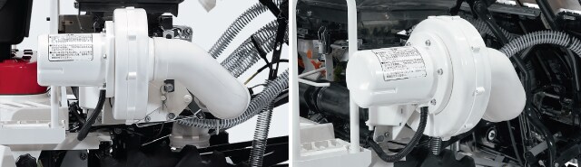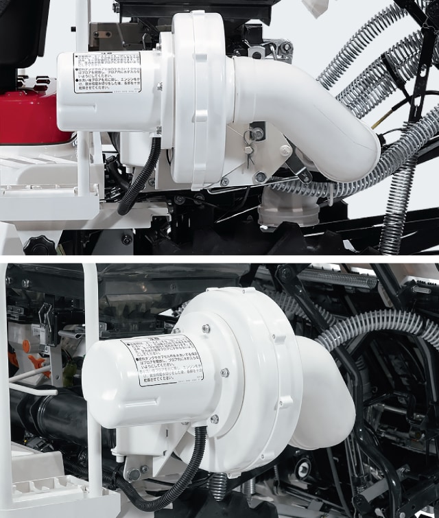 肥料が詰まりにくい温風ブロアを採用。エンジンで温められた温風で肥料を除湿し搬送します。