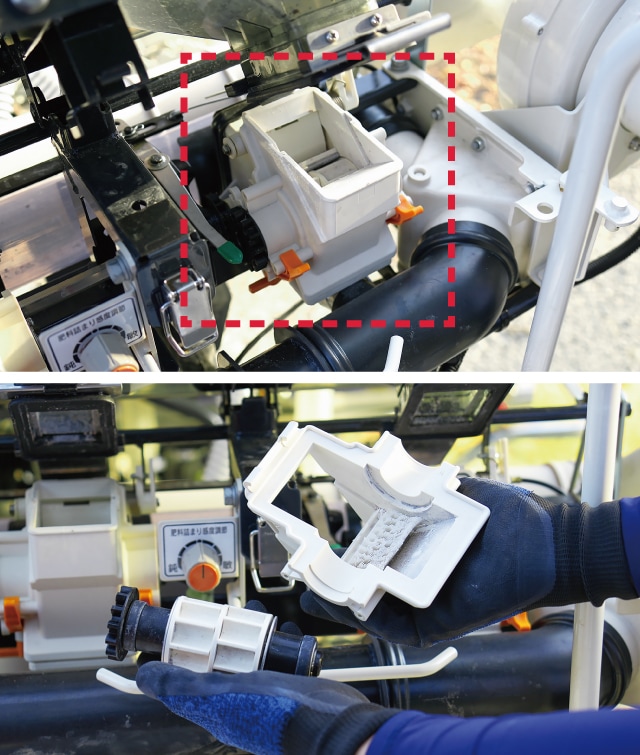 肥料の補給がしやすい、ストレートホッパーを採用。