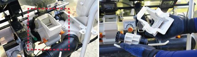 エアー排出方式で、残った肥料の排出がスピーディに行えます。