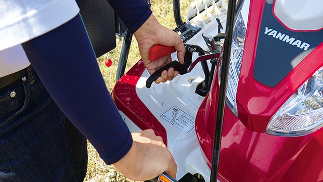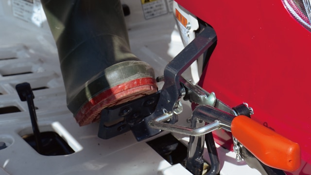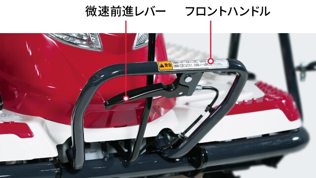 ほ場の出入りや、あぜ越えでも、軽い力で機体の前上がりを抑えられます。
