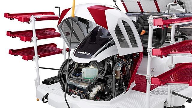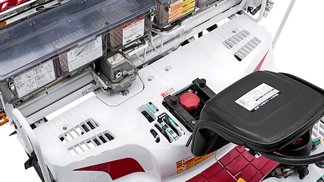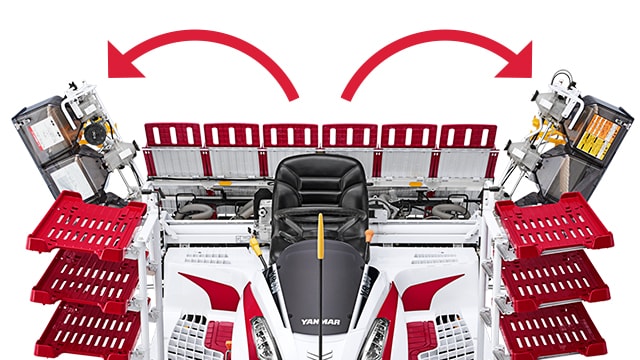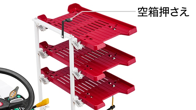 苗マット押さえを上下から解除できるので、苗の取出しが容易です。
