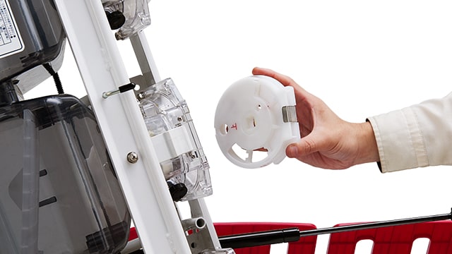 エアーとの合流部の詰りを防ぎ、スムーズに肥料を送り出します。