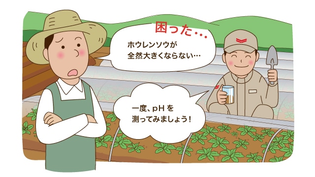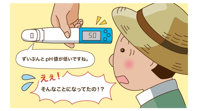 作物によって最適な土壌のpH(酸性度)が異なります。pHを測定し、作物に最適なpHとなるよう適切な対策を行いましょう。