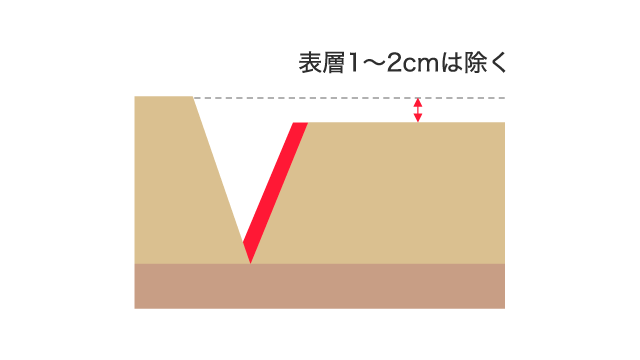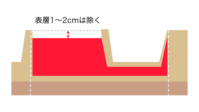 ①表層を取り除く(1~2cm)