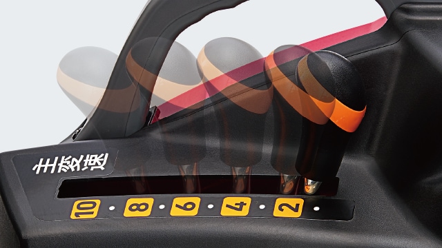 主変速10段で条件に最適な速度が選択可能。ノークラッチで変速ショックもなく軽くスムーズに操作できます。