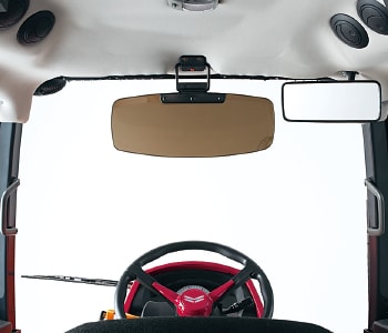 アームを伸縮させてミラーの位置を変えられます。作業機の確認に便利。