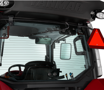 前面と両サイドドアに継ぎ目のない曲面一枚ガラスを採用。乗り降りがしやすく、作業状態もよく見えます。