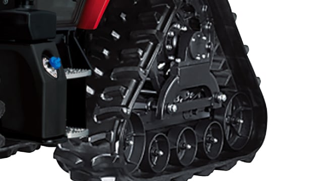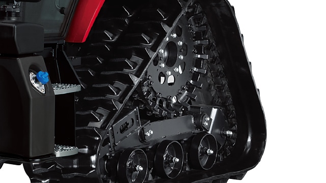 前輪に比べ、大きな荷重がかかる後輪はクローラなので、広い面で接地し荷重を分散。ホイルトラクターの約1/3の低い接地圧で沈み込みが少なく、湿田や軟弱地で優れた走破性を発揮します。
