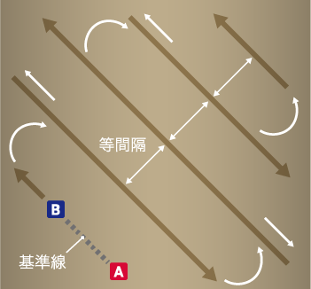 ほ場を斜めに等間隔で作業する目視では難しい作業も、自動で設定通りの間隔で作業できます。