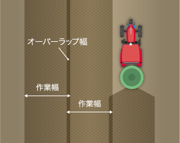 作業幅やオーバーラップ幅を設定することで、間隔を開ける肥料散布作業や1本飛ばし、2本飛ばし作業も迷わず等間隔で作業ができます。余裕を持って旋回できるので、ほ場の荒れも少なくなります。