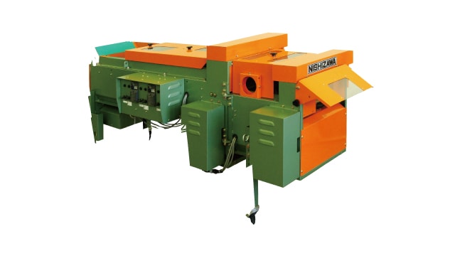 首の部分に青味の残る未乾燥のたまねぎの、根と茎を適正位置で高能率にカットしていきます。