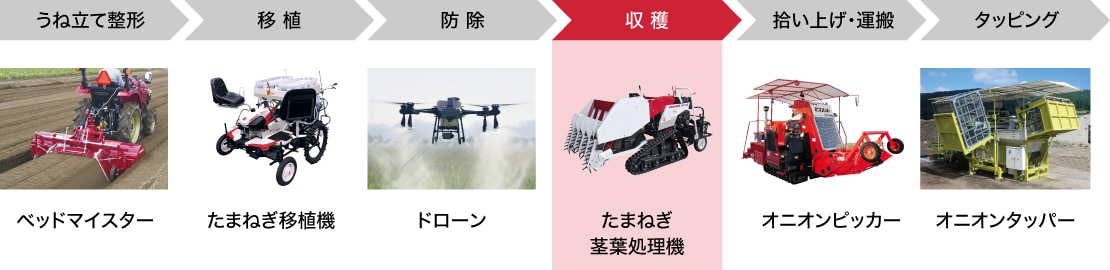 ヤンマーは、たまねぎのうね立てから出荷までを、しっかりサポートしています。