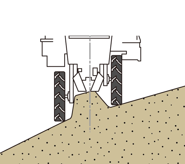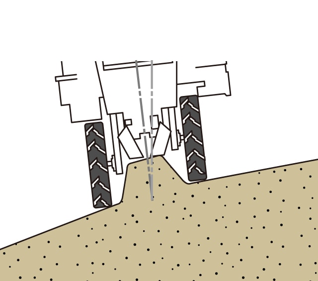 機体の左右姿勢を手元の操作レバーで調節できるので、傾斜地でもうね頂上へしっかり植付けできます。