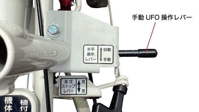 傾斜地や溝に段差のあるうね、軟弱なほ場での植付けは、油圧水平制御(UFO)で機体を常に水平に制御するので、安定した植付けができます。