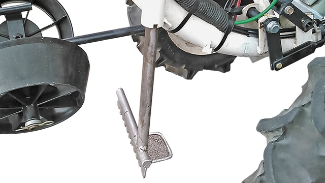 苗のせ台を横方向に幅広く設置したことで、ロータリーポット横からの苗供給作業がラクに行えます。