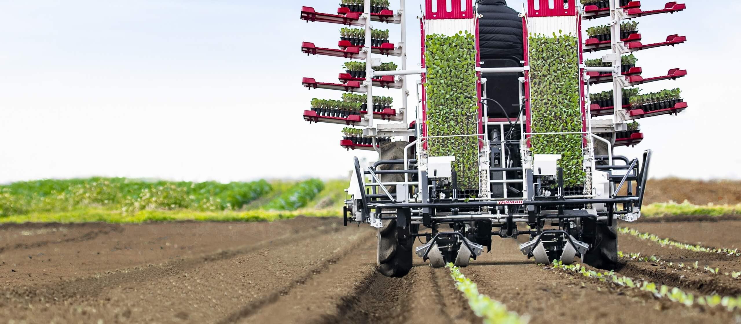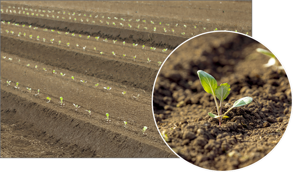 植付けと同時に苗の株元を鎮圧。苗をまっすぐ植えるとともに、根鉢と土を密着させることで、活着が良くなり、初期生育の安定が図れます。