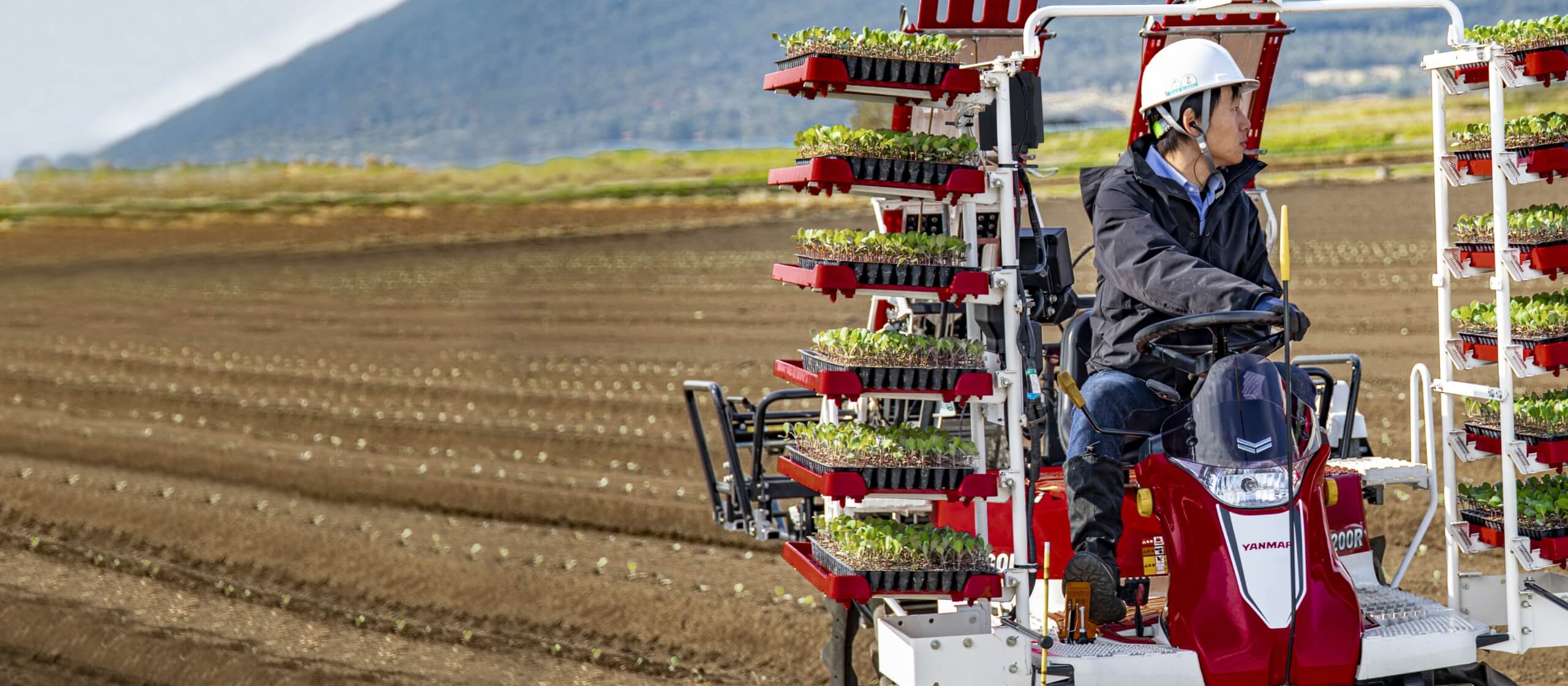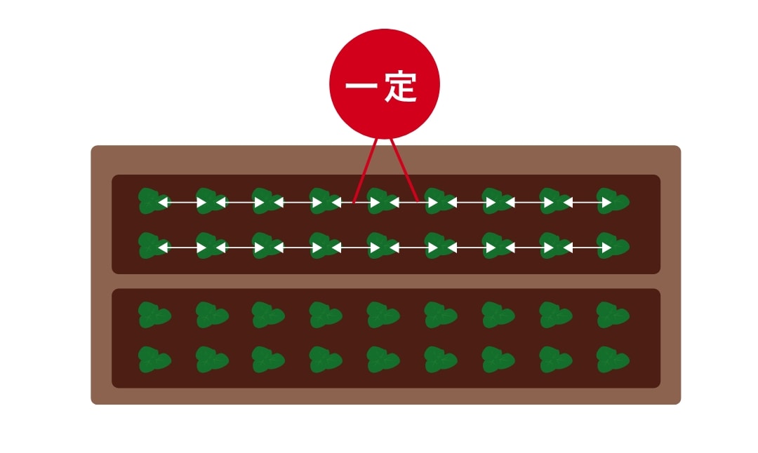 植付機構と車速が連動しているので、車速が変わっても株間の間隔は一定に保つことができます。