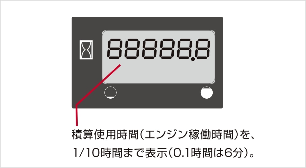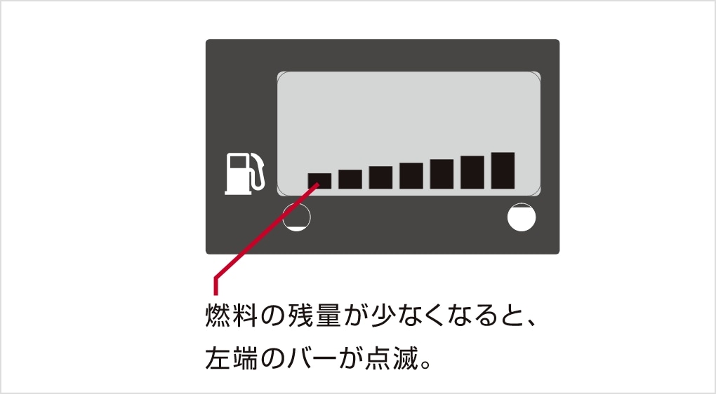 ハンドルコラムの液晶パネルに、燃料の残量がひと目でわかる燃料計とアワーメータを表示します。