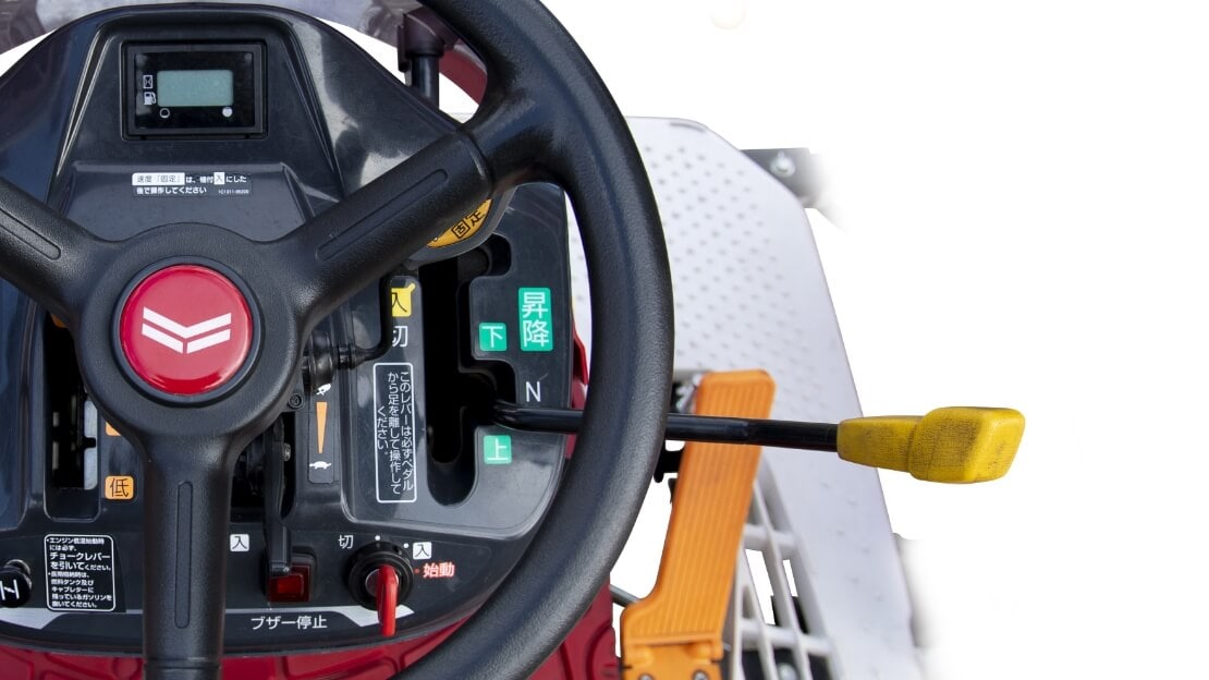 旋回時は、植付操作と昇降操作が「植付昇降レバー」1つのみで簡単におこなえます。