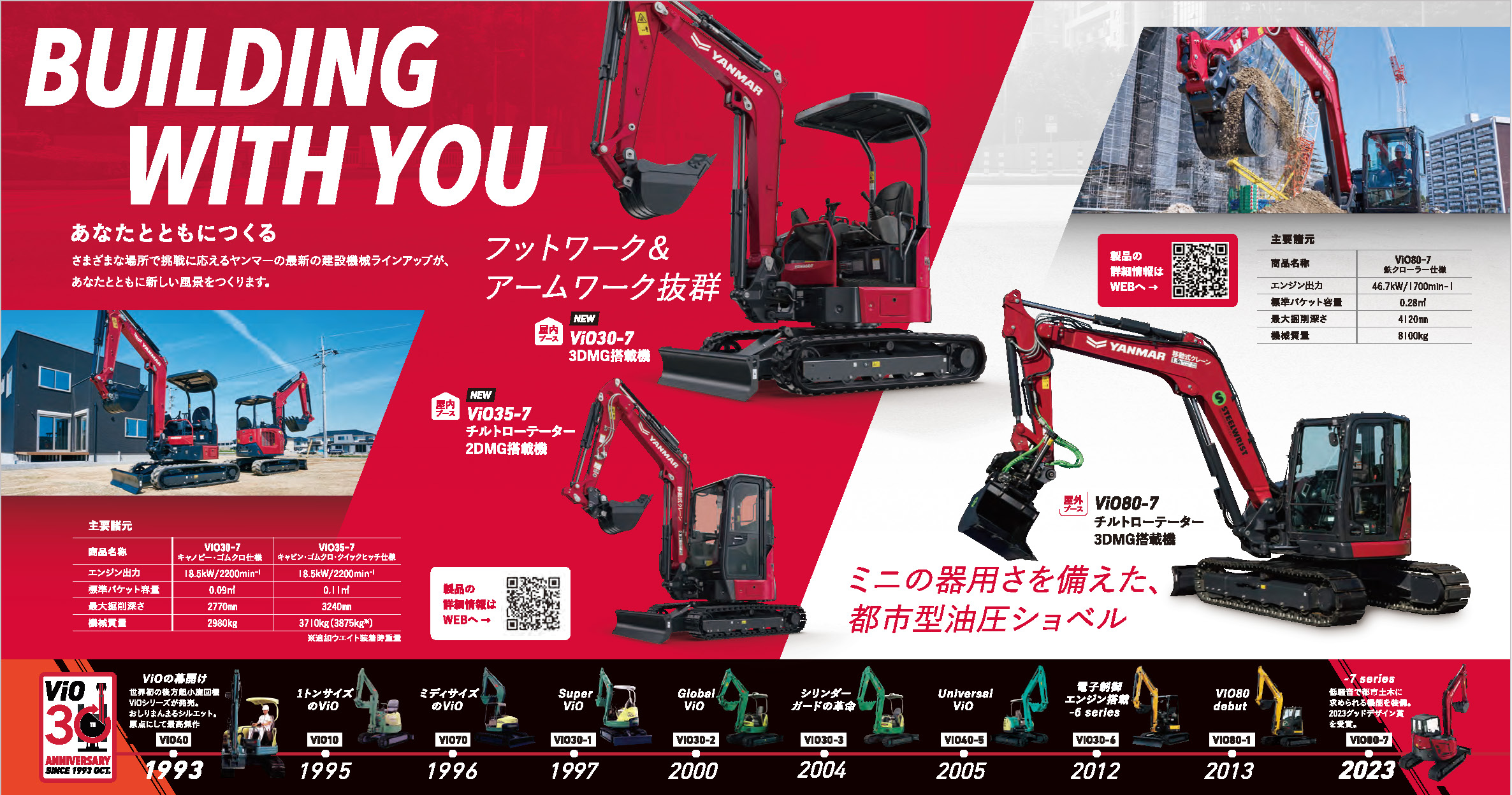 「チルトローテータ」を搭載した「ViO80-7」への試乗が可能なほか、プロオペレータによる実演も予定しています。「ViO80-7」は、ヤンマーTNVエンジンの高出力化や右サイド&リアビューカメラの搭載などにより作業効率性と安全性を大幅に向上させた製品です。「チルトローテータ」との組み合わせで、作業効率のさらなる向上を体感いただけます。