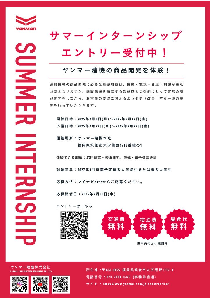 ヤンマー建機は、理系学生を対象に5daysサマーインターンシップを開催します。