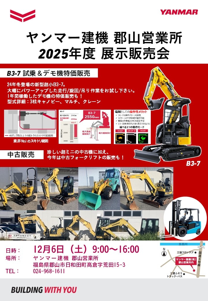 ヤンマー建機郡山営業所にて2025年度展示販売会を開催します!