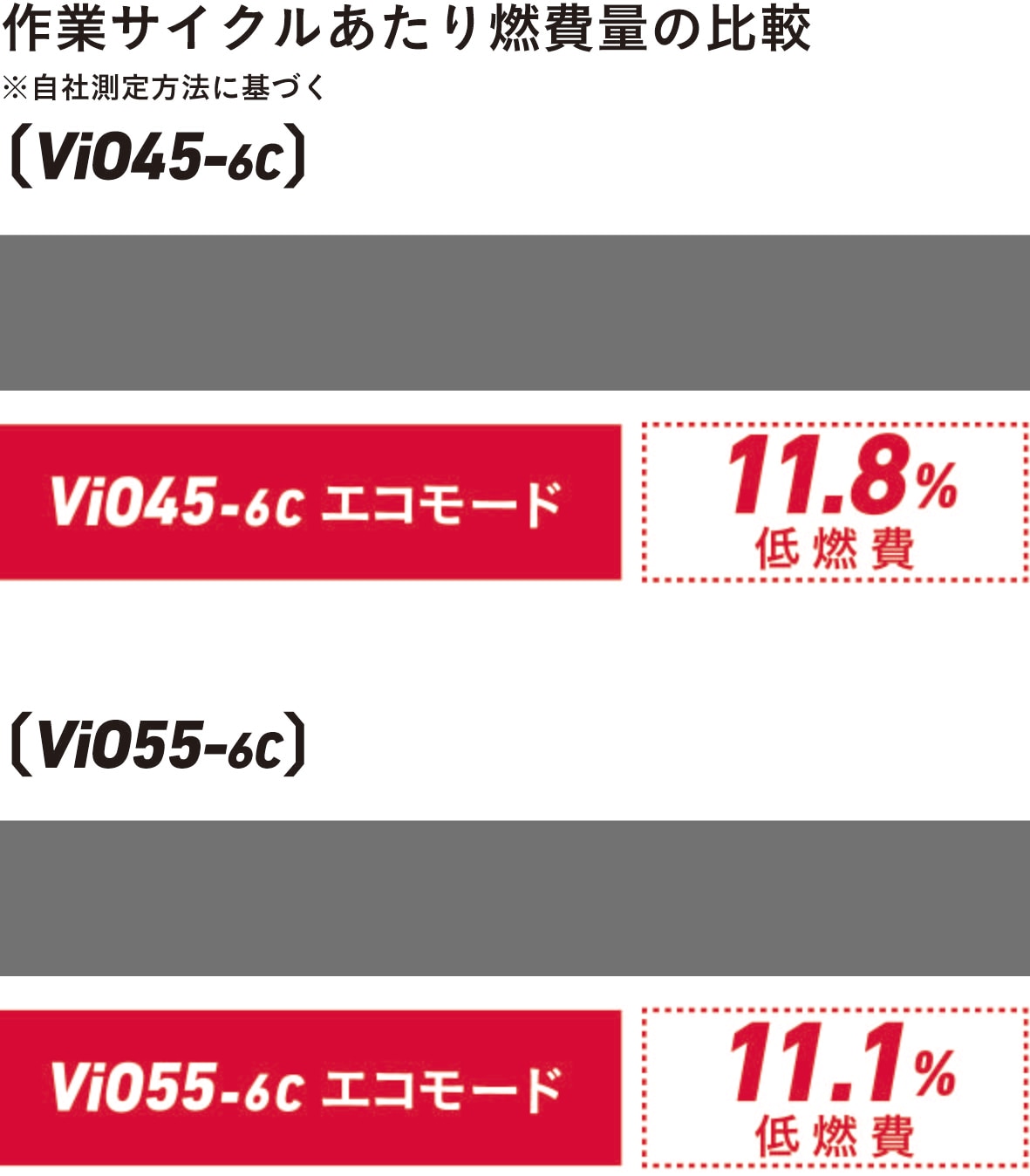 本機は、従来モデルから搭載していたエコモード使用時において、エンジン回転数の最適制御により従来機比「ViO45-6C」11.8%「ViO55-6C」11.1%の燃費向上※1を実現しました。