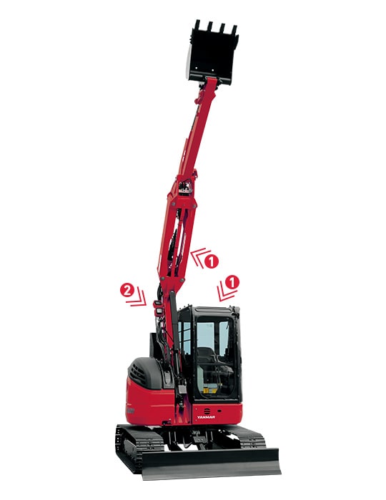 シリンダー内装式リンクブームによりオフセットシリンダーをガードしているため、右オフセット時にシリンダーを傷つける心配がありません。