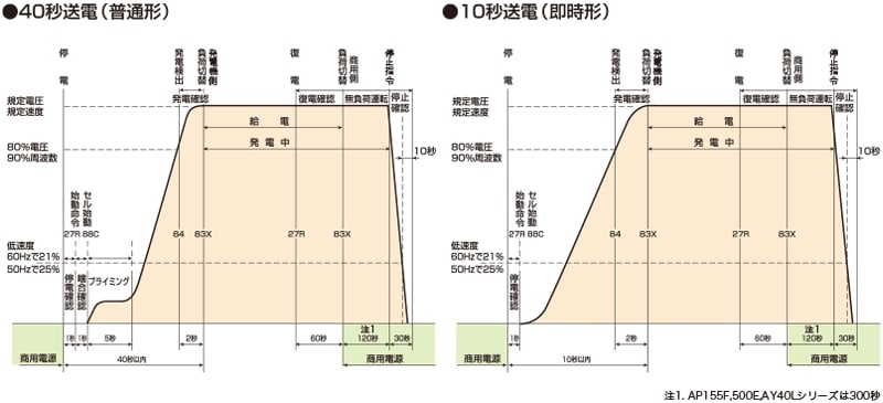 - ※自動保守運転中に商用電源が停電しますと、自動的に給電状態に移行し自動運転を継続します。 また、復電しますと、自動的に停止して待機状態に戻ります。