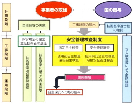 平成7年12月1日付け電気事業法の改正により、工事計画届出は公害防止に関する工事計画届出書に簡略化され、使用前検査はなくなりました。