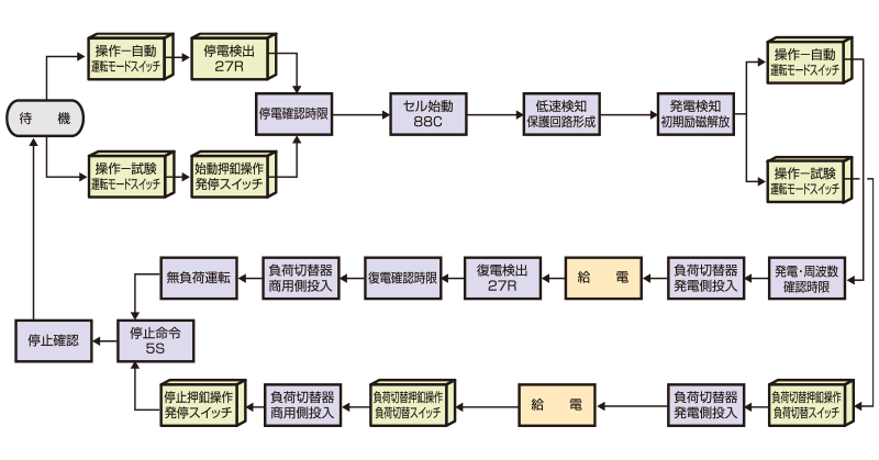 - ※運転中に重大な故障が発生しますと、警報が発令しエンジン停止、または発電機遮断器を遮断します。