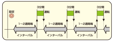 手動の保守運転ができない場合に、一定間隔で自動的に無負荷運転を行います。