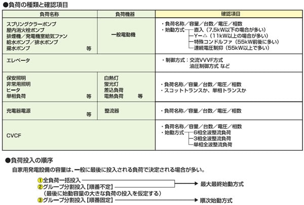 防災・非常用の自家発電設備を設置する場合、消防予第100、186号通知に 基づいた容量計算書による発電機容量の算定が必要です。