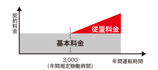 年間規定稼働時間を超過した場合は、ご使用いただいた分を加算してお支払いいただく料金システムです。