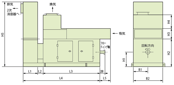 | ユニット質量(排気消音器を除く)(kg) | 2750 | 3650 | 4800 | ||||||