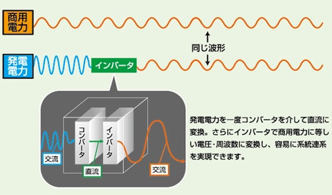 簡単に商用電力への系統連系が可能となり、イニシャルコストの低減とエンジニアリングの省力化が実現。
