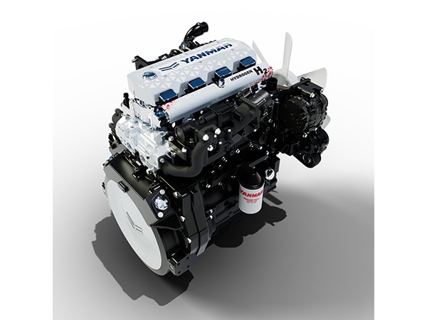 最新のディーゼルエンジン「4TN101」(排気量3.8リットル)をベースにした産業用水素エンジンのコンセプトモデルを国内で初めて展示します。既存のエンジン設計を大きく変えることなく、水素燃料に適応することができます。