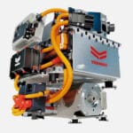 ホイールローダーのモックアップに搭載されたe-Powertrainシステム(電動パワートレイン)を展示します。お客様の多様なニーズに対応し、計画から製造、品質保証、アフターセールスまで、一貫したサポートを提供します。