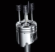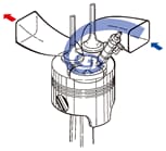 2つの排気弁と2つの吸気弁を採用することにより、吸排気性能を大幅に改善。燃料の噴射精度がさらに向上しました。また、直立取り付けの噴射弁は、各噴口ごとの噴霧の不均衡を最小に抑えます。燃焼効率、安定性が向上させることかできました。