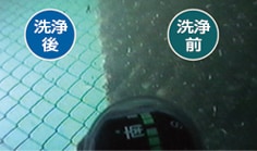 高圧ポンプの全水量を使った強烈なパワーで一気に洗浄。洗浄水の噴射反発力を利用したプロペラ回転によって、網にピタッと密着。みごとな洗浄性能を発揮します。