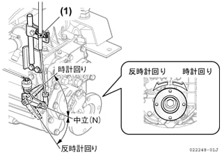 - リモコンハンドルをN(中立)、AHEAD(前進)、ASTERN(後進)の位置においたとき、クラッチのシフトレバーがそれぞれ正しい位置にあるかを確認します。