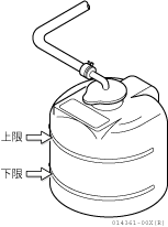 サブタンク内の冷却水の水量がサブタンクの下限目盛りに近い場合は、サブタンクのキャップを開けてきれいな軟水を上限目盛りまで補給します。