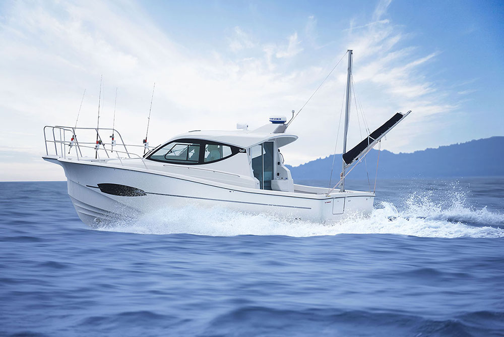 機能的なラインと面構成を採用することにより走航性能・釣り機能・快適性を高い次元で実現したフィッシングボート「FX24EZ」に、充実した釣り装備を追加した特別艤装艇を展示します。