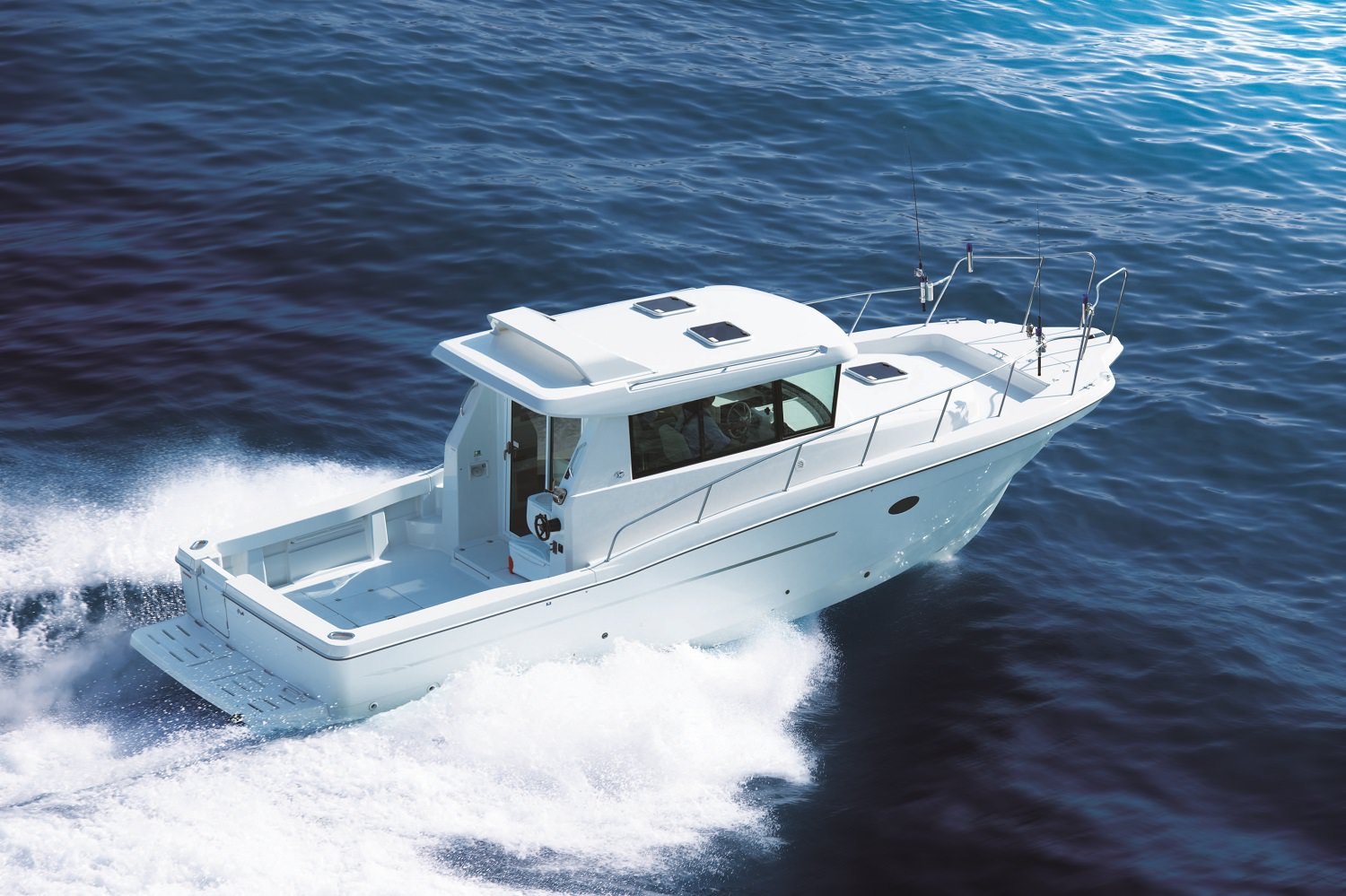 この度、フィシングクルーザー「EX38」のフライングブリッジ仕様「EX38FB」を初披露する他、昨年発売したフィッシングクルーザー「EX34」のハードトップ仕様など、人気のモデル4艇を展示します。また、自動操船技術の一部である「自動着桟システム」などの先端技術を映像で紹介します。