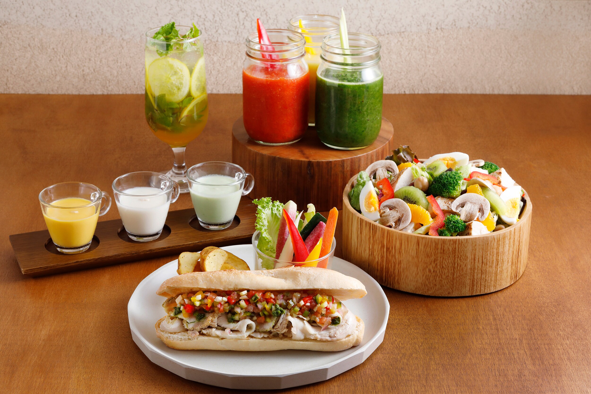 エントランス広場に位置する、ヤンマー直営のフードコート型レストランです。ガラス張りで開放感のある店内と自然を感じるテラス席は、居心地の良さと様々なシーンでの思い出を提供します。一次産業向けに事業展開してきたヤンマーらしい、新鮮な野菜を添えたローストビーフのライスプレートやサンドイッチをメインに、ヤンマーオリジナル食材「ライスジュレ」を使ったスープやデザートのほか、自家製レモンシロップを使ったレモネードやカクテル、野菜や果物の色と味をそのまま活かしたスムージーなど豊富なメニューを用意しています。