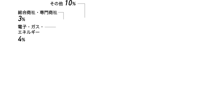 内訳 - 医療機器、繊維・化学・ゴム・ガラス・セラミック、食品・農林・水産、陸運・海運・物流、電子・ガス・エネルギー、機械・プラント、警備・清掃、総合商社・専門商社