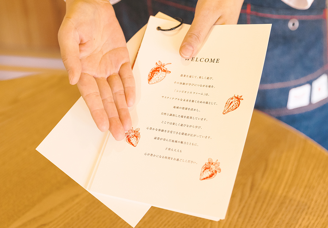 お席にご案内。プライベートな空間でまずはいちごや当施設のご紹介。