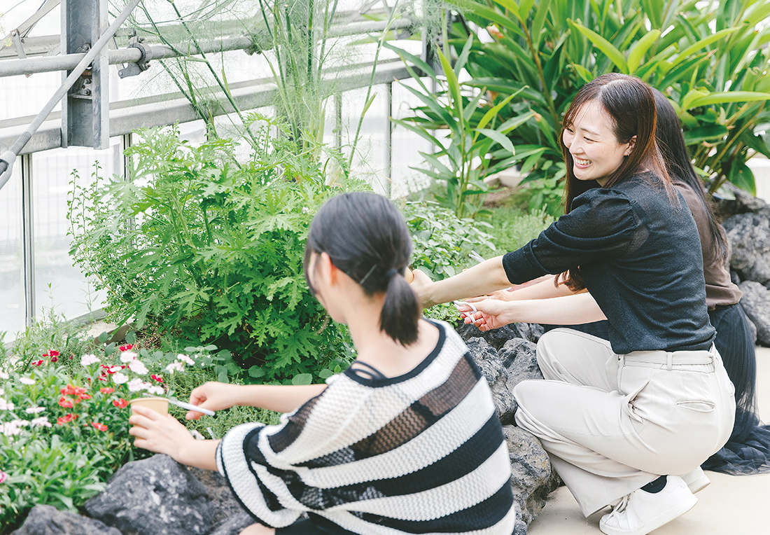 まずは和ハーブガーデンでオリジナルハーブウォーターづくり。ハーブについての学びの時間。