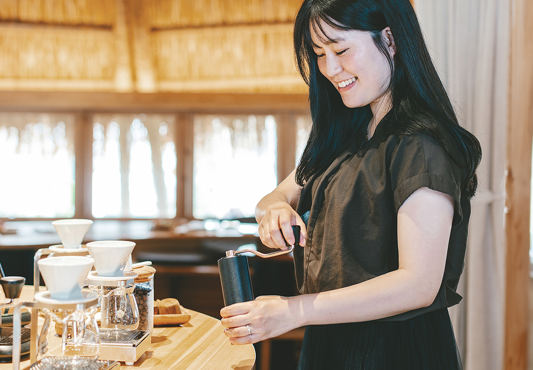 ドリンクは滋賀こだわりのものをご用意。珈琲は豆から挽きたて。抹茶を自分でたてる体験も!