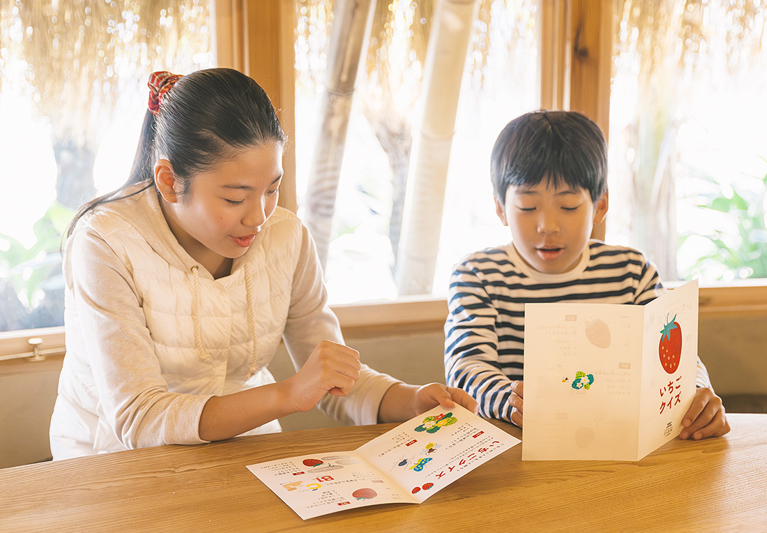 お土産のいちごやその時期に収穫できたお野菜などのお買い物。子どもたちはいちごクイズの答え合わせ。